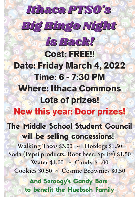 The Ithaca High School homecoming dance will be held September 24th from 8 to 11 pm in the Ithaca School Commons. Grand March will be held at 930 pm. Admission is $5 for students and $2 for spectators. Students must be dressed semiformally to be admitted into the dance.